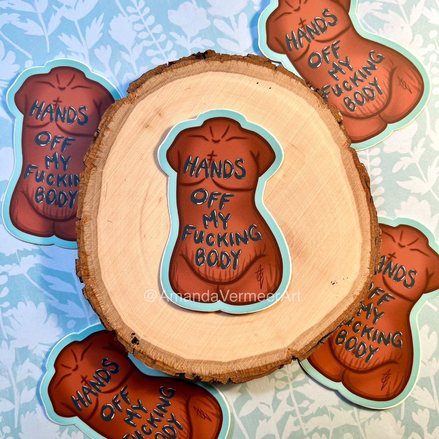 Hands Off My Fucking Body Masc Sticker (Blue), 3”x2”