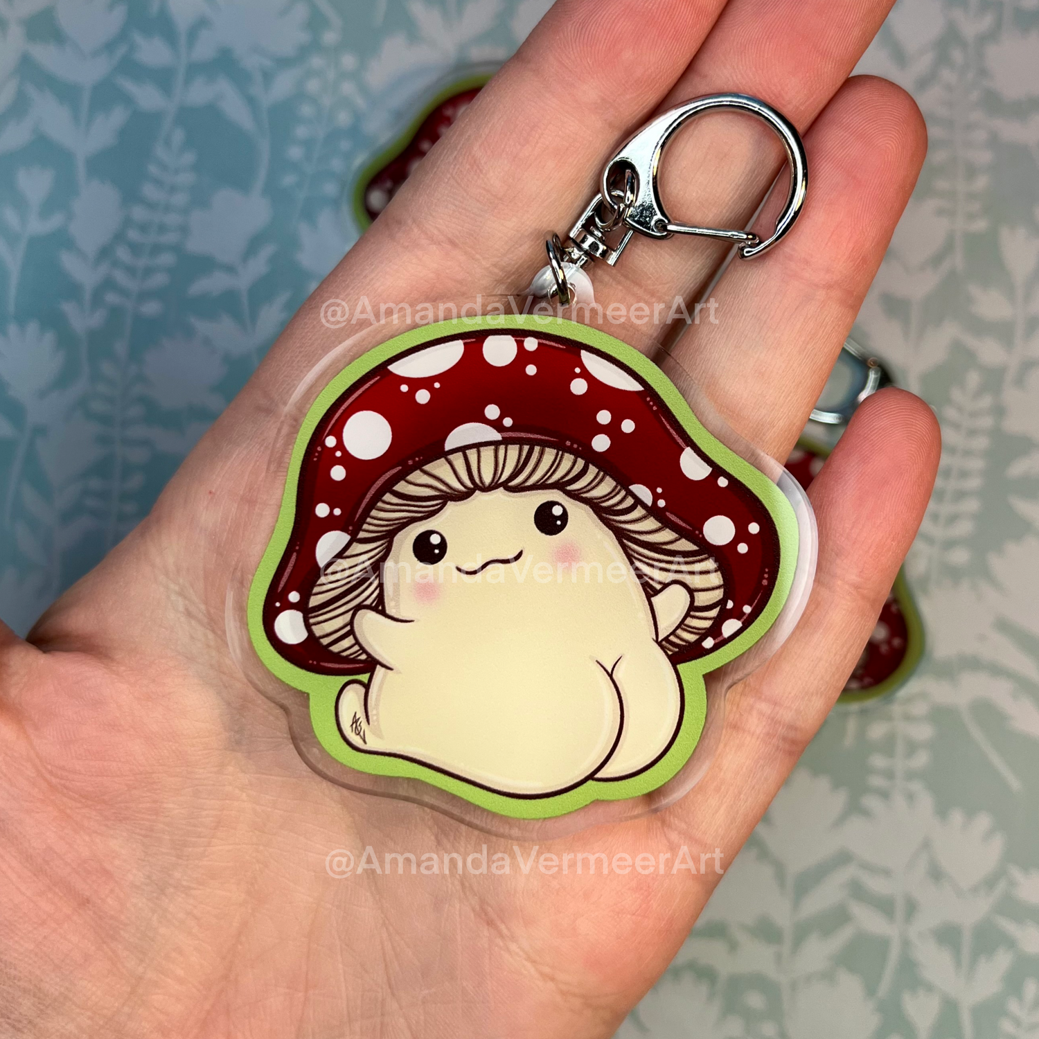 Mortimer Mushroom Butt Keychain, 2.5”x2.5”